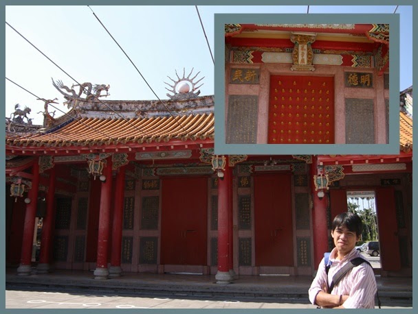 沒好好參觀廣興紙寮,離開後,還有些許時間,我們就到市區裡的孔子廟及媽祖廟,孔子廟唯持一貫的寧靜,我們走了一下,拍個照,隨即穿往旁邊的媽祖廟,一走進去,我和親愛的異口同聲的發出”哇~~~“的聲音,因為整個廟好大間,而且整個外觀裝飾就很壯觀,我們進去裡面拜拜並拿了二包平安米,於是就離開媽祖廟,去吃午餐囉。