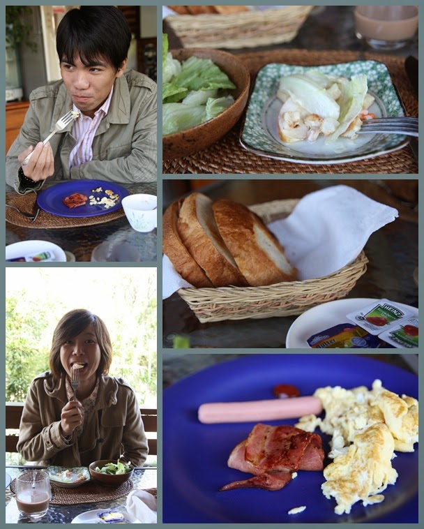 早餐是裡民 宿主人親自為我們準備的,有一盤沙拉、超好吃的烤土司及一盤裝著熱狗、炒蛋及培根的早餐,另外,有熱咖啡、豆漿及奶茶我們可以自己取用,吃早餐時望著外面的花園,感覺很輕鬆,那種享用早餐及如此美好的氛圍,為那早帶來滿滿的活力,真的超感謝民宿主人如此好吃的早餐。
