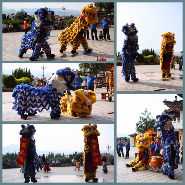 離開造紙龍手創館後,我們轉往早上沒找到的地母廟,一到那裡,正好有進香團,就有舞龍舞獅表演,聽那鼓聲氣勢磅礡,整個人都跟著興奮起來,還有接著的舞獅表演,一藍一黃二組人馬組成,色彩也很好看,我在一旁拿著相機猛拍,還有撿他們丟出的糖果,好好玩。我還在一旁的牆面上看到貼了很多紅紙,就是歡迎來進香的團體,真可怕,我看那一排貼的少說有二十個團體,地母廟還真的是香火鼎盛耶。