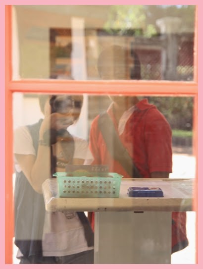 最後離開前,在蓋章的臺子,剛好頭抬起來看到鏡中的影像,索興相機拿起來拍一下,這張我很喜歡,感覺很特別。
