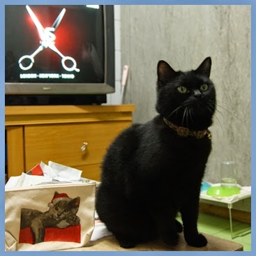 (後面的電視上的廣告太搶眼了啦,一附好像在代言剪刀.)