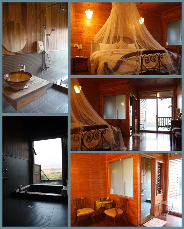 回民宿放行 囉,還不到三點,但看親愛的背著行李好辛苦,我提議就算不能先check in,那先讓我們放行李總行吧,於是我們就前往夜宿的地方「水月山莊」,這個民宿令人感覺很舒服,整個建築都是由木材搭起的,與自然結合在一起,而房間裡除了有個小陽台可供人在那愜意的休息聊天外,浴室裡有一個可以看窗外的泡澡池耶,不過,當天晚上,有幾戶都有小朋友,所以聲音就大了點,我們多少有被影響 到,覺得小掃興,但,隔天一早的早餐,大大加分,讓我們忘記前一晚的吵雜聲。